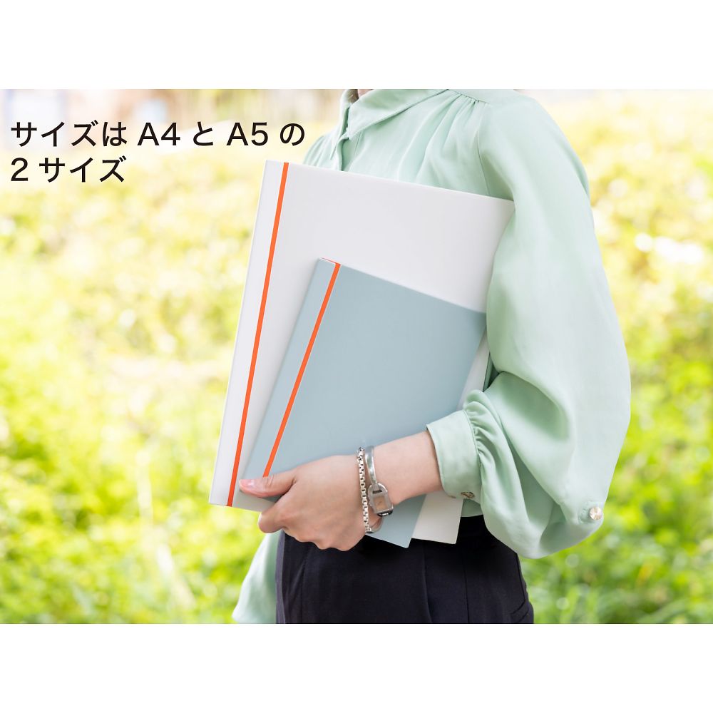 ●フレームをスライドするだけでファイリング可能なリングレスノートです。●表紙が360°展開するので立ちながらの筆記がしやすくなりました。●穴あけが不要なためクリーンルーム等での使用に便利です。●コピー用紙であれば30枚程度挟めます。●サイズ:A4●色:ライトブラウン●材質:表紙/PP、スライドフレーム/ポリカーボネート●サイズ:299×214×12mm●重量:128g