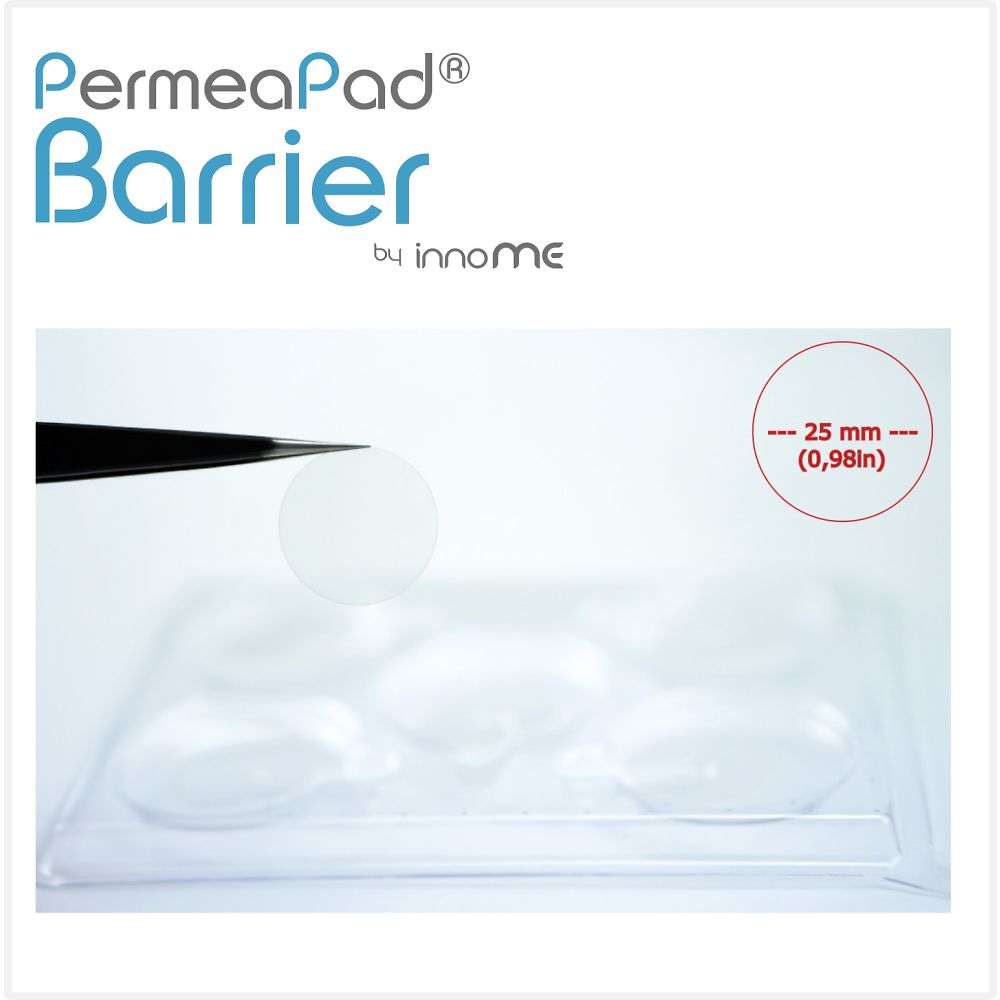 ●薬物透過速度試験に使える人工膜です。●リン脂質をセルロースフィルムで挟み込んだ多層構造です。●常温での長期保管が可能です。●前処理の必要がなく、いつでもすぐに使用できます。●均質な人工膜なので、高い測定再現性が得られます。●広いpH範囲で安定した試験が可能です。●エタノール・DMSOなど溶媒、界面活性剤、生体模倣溶媒を含む試料でも使えます。●使用にはフランツセル等の容器が必要です。●膜を透過した成分の濃度は、HPLCやLC-MSなどで分析。●シート●▼サイズ:φ25mm●▼材質:セルロース、リン脂質●▼入数:1箱(50枚入)●試験条件●▼試験温度:e.g. 25℃, 37℃(その他の温度でも可能)●▼pH範囲:1~10●▼試薬濃度:0.1~5mM●▼試験時間:最大24時間●保管条件●▼場所:直射日光や紫外線が当たらない場所●▼温度:室温で保存可能●▼有効期限:1年