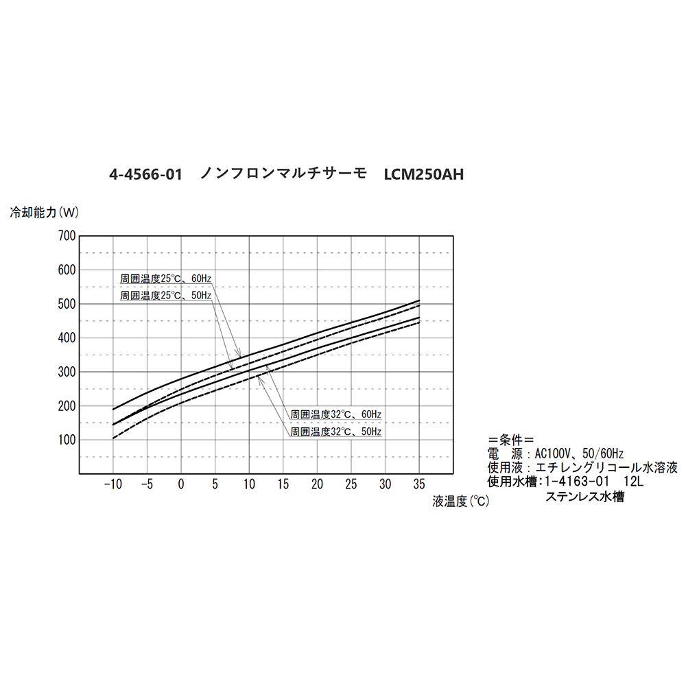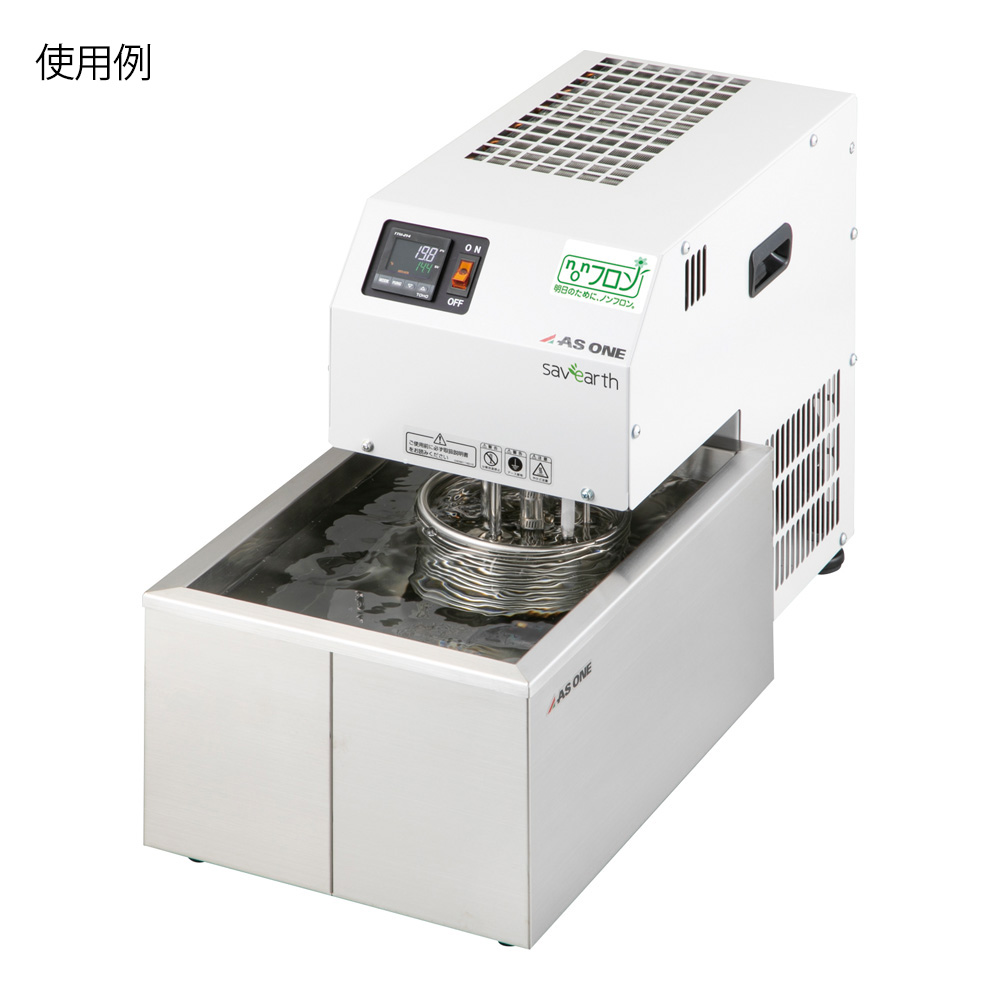 ●水槽に冷却コイルを入れるだけで加熱・冷却ができます。●撹拌機能を標準装備しています。●オゾン破壊係数0、地球温暖化係数1未満の環境にやさしいノンフロン冷媒R1234yfを採用しています。●「フロン排出抑制法」の対象外ですので、定期点検、記録の保存、フロン廃棄コストが不要になります。●各種安全保護機能を搭載しています。●外寸法(mm):230×415×390 ※ 外径寸法に突起部分は含みません。●★入数:1個●使用液温度範囲:-10~+60℃●冷却能力(50/60Hz):350W/370W/at20℃、105W/145W/at -10℃ ※周囲温度32℃、使用液エチレングリコール水溶液での運転時●温度制御幅:±0.2℃ ※周囲温度32℃、設定温度20℃、水槽(S-1)、エチレングリコール水溶液12L使用時の参考値です。水槽、液量、設定温度、液種類により変わります。●表示方式:PV・SVデジタル2段表示(0.1℃)●温度制御方式:PID制御●温度センサー:測温抵抗体(Pt100Ω)●使用液種類:清水、エチレングリコール水溶液●冷媒:R1234yf●撹拌機能:噴流撹拌式●加熱ヒーター:1000W●保護装置:漏電ブレーカ、圧縮機モータープロテクタ、高圧圧力スイッチ、上限温度異常検出●最大運転電流(50/60Hz):13.2/12.8A●電源:AC100V 50/60Hz●重量:18kg●※水槽は付属しておりません(推奨水槽:1-4163-01)。