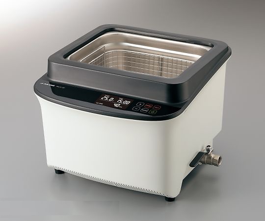●Point① 防水性、操作性に優れたパネル!●▼操作部分からの浸水なし●▼静電容量式タッチボタン採用で操作性に優れている●▼手袋をしたままの操作が可能●Point② 個性的で独特なデザイン●▼高いデザイン性●▼本体下部に取手として使用できる凹みあり●水に強い2大特長!※本機は完全防水構造ではありません。●CHECK 1 水が浸水しない安心構造●▼洗浄物を入れ過ぎてオーバーフローさせてしまい内部に水が浸入した、という事例が数多くあります。本機は上から流れる水が内部に侵入しない構造となっており、オーバーフロー時にも安心です。●CHECK 2 トレーに水が溜まっても動作できる●▼本体の下に水受けとしてトレーを敷いてご使用されている場面も多くあります。トレー内に溜まった水が本体下部から侵入して内部の基板が故障した、ということを防ぐため本機は本体下部40mmの位置まで浸水しても問題無く動作できる構造となっています。●筐体は耐薬品性に優れたポリプロピレン製です。●操作部はタッチ式ボタンで外部からの水の浸入を防ぎます。●オーバーフローした際に本体下部の40mmまで水に浸かっても、動作可能な構造です。●99分までの長時間タイマー付きで、減算式デジタル表示で残り時間がすぐに確認できます。●ディガス機能により、液中のガスを取り除くことができ効果的な洗浄が可能になります。●メモリー機能により、温度・時間の設定値は電源をOFFにしても記憶されています。●二周波タイプは洗浄物の汚れに合わせて周波数を選択できます。●周波数自動交互運転機能付きですので、手間が掛からずより細かな洗浄が可能です。●単周波・樹脂筐体タイプ●外寸法(mm):410×395×306●槽内寸法(mm):300×240×150 ※開口寸法です。底面寸法(平滑部)は少し小さくなっています。●槽容量:約10L●材質:本体/PP、水槽/SUS304●表示:LCD(液晶)●発振回路:自励発振方式●発振子:BLT(ボルト締めランジュバン)●出力:200W●発振周波数:40kHz●ヒーター容量:300W●電源/電源コード:AC100V 50/60Hz/1.8m(3Pプラグ)●周波数切替機能:-●付加機能:ヒーター機能(設定範囲:常温~60℃/1℃単位)、タイマー機能(設定範囲:1~99分/1分単位)、ディガス機能●安全機能:過電流防止、ヒーター過熱防止、過負荷防止●排水:手動排水バルブ 口径Rc1/2●付属品:洗浄カゴ×1個、フタ×1個、ホースニップル×1個●重量:約9kg