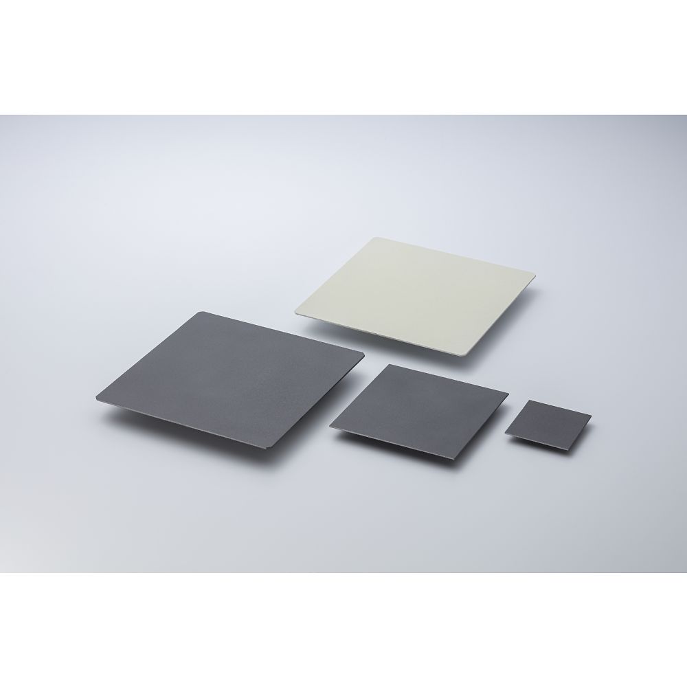 ●炭化ケイ素の気孔を金属シリコンで埋め気孔率をゼロに限りなく近づけたNEWSIC(高強度緻密質SiC系セラミックス)です。●高強度を強みとするNEWSICは、常温から高温までの幅広い温度域で、従来のSiC系耐火物の5倍(250MPa)の強度を実現しました。●高強度により薄肉化・重量削減が可能で、窯全体の昇温・冷却に必要なエネルギーが減らせるため、製造プロセスのCO2削減と省エネルギー化に貢献します。●銅やアルミニウム金属のものと同程度かつ、従来耐火物の約10倍(当社比)の熱伝導率を持ちます。急激な温度変化(急昇温急冷却)にも耐えるため、昇温・冷却速度の調整により、焼成時間を30~40%短縮することも可能です。●酸化劣化がほとんど発生しないため、寿命を従来の3~10倍に延ばすことができ、廃棄物の削減やランニングコストの削減が見込まれます。●ジルコニア以外にも様々なコーティングが可能となります。●サイズ(mm):150×150×1.7●重量(g):100●入数:1個●カサ比重3.0●見掛気孔率0%●化学組成:SiC/80%、Si/20%●耐熱温度:1350℃以下●曲げ強度(Mpa):250(室温?1300℃)●ヤング率(GPa):350●電気抵抗率(10??Ωm):1.0×10?●比熱(J/(kg・K)):700●熱膨張係数(10??/K):4.5●熱伝導率(W/(m・k)):180●耐酸性:0.1>