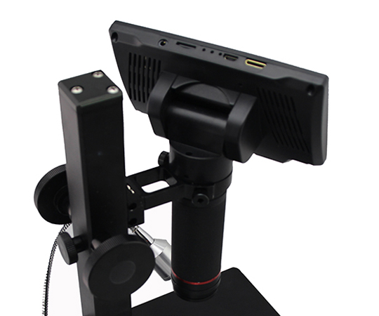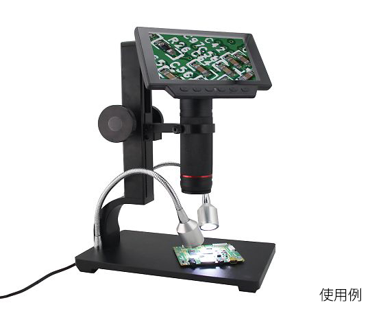 ●ソフトウェアのダウンロードはこちらから●●モニター・照明一体型のデジタルマイクロスコープです。●観察画像共有モニターPCや他にモニターを用意することなく、観察可能です。複数の方で観察画像を共有できます。●LED落射照明を搭載。角度を変えて照らすことができますので、照明の調節が可能です。●メタルスタンド耐久性に優れたメタルスタンドです。●HDMIモニターに接続して、フルHD画質(1080p)画質で表示できます。●外部照明付で明るさの調整に便利です。●サイズ(mm):170×120×200●★ステージサイズ:幅約118mm×奥行180mm(奥の支柱部分は含まず)●重量(kg):約1.5●倍率:本体モニター使用時/5~20×●モニター:5インチ撮影素子(300万画素HDセンサー)●光源:LED外部照明×2焦点距離(50~120mm)●電源:USB・AC変換アダプター●記録媒体:マイクロSDカード(最大32GB)(別売)●静止画フォーマット:JPEGフレームレート(最大30fps(照明600lux時))●ビデオ出力:1080PフルHD(HDML)、720P(PC)、AV静止画解像度(1200万画素)●対応OS:Windows?8/10/11●付属品:メタルスタンド、USBケーブル、HDMIケーブル