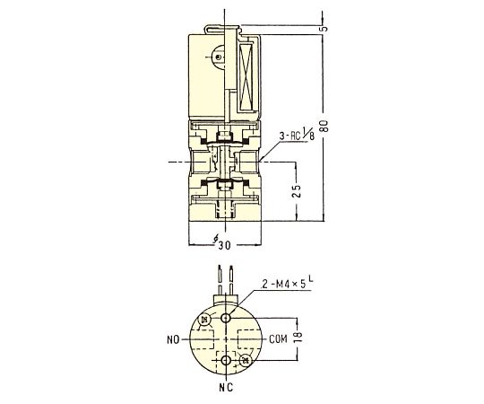 ●3方 メス型電磁弁 ボディ材質PTFE 流体温度:0 ℃(ノーフリーズ)~80 ℃Max●オリフィスm/m:3.0φ●ダイヤフラム材質:PTFE+FKM●接続部:Rc1/8●電圧:AC100V●圧力(MPa):COM 0~0.15 NC 0~0.05●コード番号:F-2368-004
