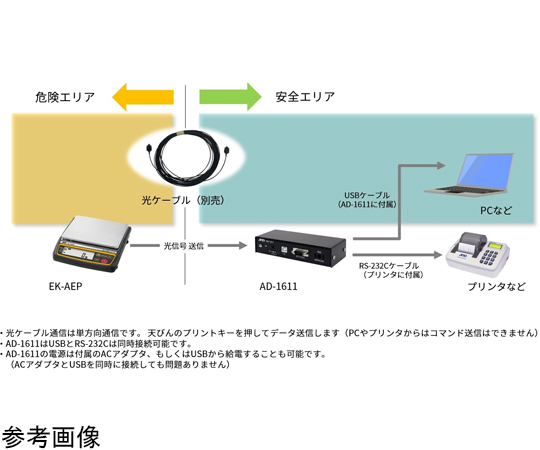 ●一般校正証明書付きです。●本質安全防爆構造 Ex ia IIB T3 Gaです。●0種、1種、2種の危険場所で使用可能です。●工場電気設備防爆指針(国際整合技術指針)JNIOSH-TR-46-1:2015 および 6:2015 による本質安全防爆構造の電子天びんです。●製薬、化学および石油化学、エネルギーや電力市場で活躍します。●30,000分の1の高分解能です。●g・個数・%モードです。●「HI」「OK」「LO」のコンパレータ表示が可能です。●暗いところでも見やすいバックライト付き大型液晶表示です。●オートパワーオフ機能、風袋引き機能付きです。●光信号によるデータ出力機能:別売の光通信アダプタAD-1611を接続することで、光信号を電気信号に変換し、USBおよびRS-232Cにて計量データをPCや外部接続機に出力することが可能(出力のみ)です。●ひょう量:300g●最小表示:0.01g●表示単位:g(グラム)・pcs(個数)・%(パーセント)●表示:7セグメント液晶表示 バックライト付き(文字高16mm)●計量皿寸法:φ110mm●計量皿の材質:SUS304●電源:パナソニック株式会社 LR6(XJ)単3アルカリ乾電池4個●動作時間:約250時間(バックライトオフ時)●付属品:取扱説明書、六角レンチ、一般校正証明書●※本製品の電源には、必ずパナソニック株式会社 LR6(XJ)単3アルカリ乾電池をご使用ください。●※証明書の依頼者名及び住所は空欄になります。●※お届けまでの日数は、ご注文確定後に校正を行うため、2週間前後となります。(ただし、年末年始、長期休暇は追加日数がかかりますのでご了承ください。)●※受注生産品の為、ご注文後のキャンセル及び返品・返却はお受けいたしかねます。