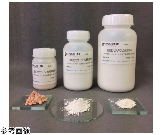 ●中心粒径への集中度が高く、微粒子のため撹拌性も良好です。●均一な仕上面が得られます。●化学組成●▼CeO2:70%~76%●▼La2O3:23%~29%●▼Pr2O3:<1.0%●中心粒径:D50=1.3μm●色:白色●対象ワーク:ガラス系素材全般(光学、産業用レンズ用ガラス・フォトマスク用石英・無アルカリガラス・一般フロートガラス)、大理石などの石材●容量:300g