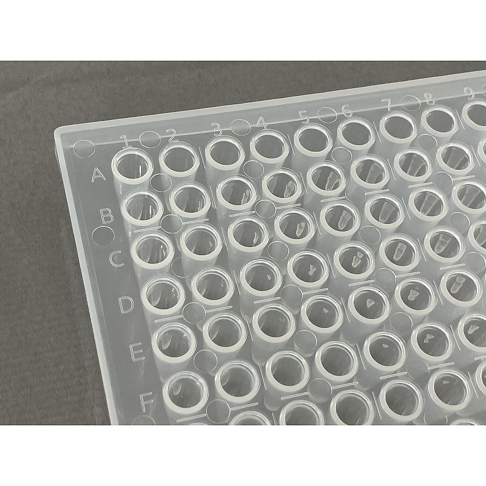 ●装置に応じて使い分けられる様々なサイズと2色のカラーラインナップ、2通りのウェル数からお選び頂けます。●ホワイトタイプでは蛍光の反射率が高まり検出感度が上がるため、必要試薬量が減ることで試薬コストの節約にもつながります。●さらに、ホワイトタイプではクロストークと呼ばれる隣接ウェルの蛍光検出を防ぐことも可能です。●肉薄で良好な熱伝導率を実現しています。●ウェル位置が分かるよう縦・横に印字があります。●研究者間のコンタミネーション防止のために小分けにパッケージされています。●ウェル数:96●タイプ:スタンダード/セミスカート●色:ナチュラル●材質:PP(米国薬局方 Class VI)●チューブ高:21mm●容量:0.2mL●DNase・Rnase・PCR阻害物質・ATP・エンドトキシンフリー