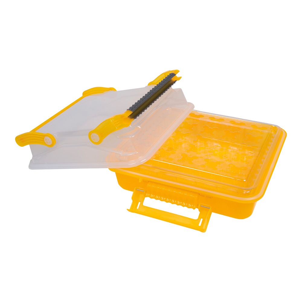 ●密閉性と防水性があり、実験室で使用する機器やサンプルを安全に持ち運ぶことが可能です。●蓋は完全に取り外し可能なため、内容物の取り扱いが容易です。●蓋とラックが透明のため内容物の識別が容易です。●ラッチ部分に開封監視用のセキュリティタグを付けることができます。●感染性物質の輸送の規格UN3373における二次容器として使用できます。●仕様:本体●タイプ:イエロー●サイズ(mm):外寸/406×414×178、内寸/305×279×165●材質:PP・ABS・シリコン・ステンレス●セキュリティタグ機能付き●付属品:チューブラック(型番:120962)×1個●規格:OSHA29 CFR 1910.1030準拠/UN3373二次梱包 輸送要件適合