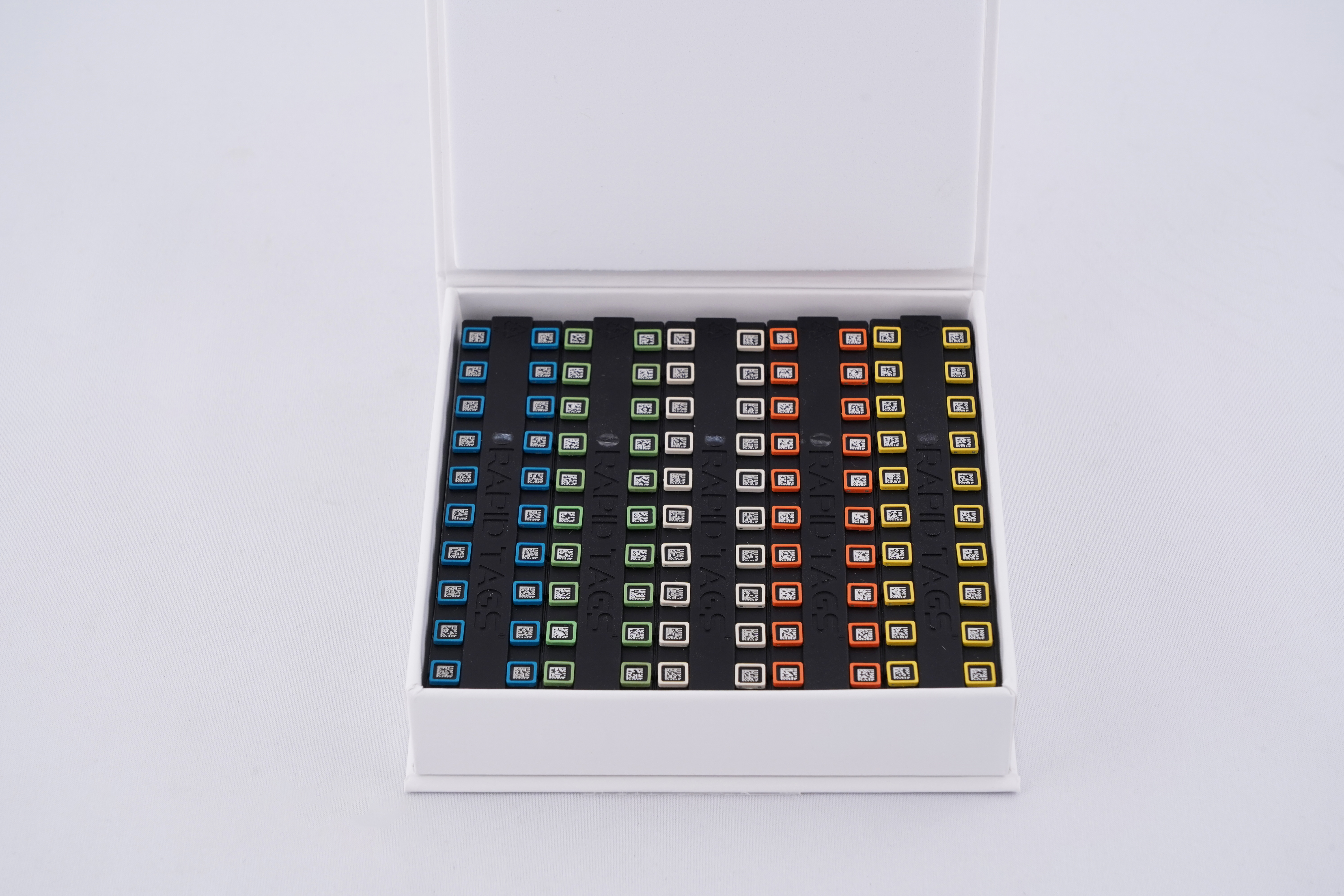 ●既存の手法よりマウスへの負担が少ない二次元バーコード付き耳タグです。●パソコン上に直接データを入力するため、作業精度の向上や効率化にもつながります。●データの一元管理のために様々なソフトウェアと統合することができます。●耳タグ●材質:医療グレードPP●タグカラー:5色(青・緑・オレンジ・白・黄)●取り付け時のタグサイズ / 重量:5×5mm / 約0.065g●入数:40枚/色×5色●低侵襲性●対応:オートクレーブ(121℃/25分)・過酸化水素水滅菌・MRI可