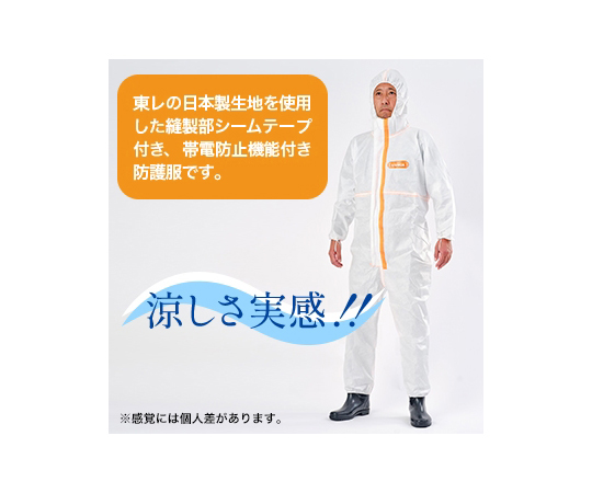●縫い目部分シームテープ付き/帯電防止加工済みの耐水圧タイプです。●廃棄物処理場や製造設備の定期修繕作業など耐水圧を必要とする作業現場※1でもご使用可能です。●独自のSMS 製法※2 により粉じん防護性と耐水圧1,000mmH?O※3 に加え、通気性、帯電防止機能を有する新しいタイプの防護服で縫い目部分にシームテープを付けています。●※1 廃棄物処理施設のダイオキシン類対策で使用する防護服は、現場の環境に応じた商品をユーザーの責任においてご選定ください。●※2 メルトブロー不織布をスパンボンド不織布で挟んだ多層不織布●※3 本商品は縫い目部分にシームテープを貼っておりません。縫い目部分の耐水圧は1,000mmH?O 未達です。●サイズ:M●適応身長(cm):168~176●通気性:96cm3/cm2・s●JIS T 8115 化学防護服タイプ4(スプレー防護用密閉服)適合●JIS T 8115 化学防護服タイプ5(浮遊固体粉じん防護用密閉服)適合●JIS T 8115 化学防護服タイプ6(ミスト防護用密閉服)適合●フードゴム、袖口ゴム、裾ゴム、足口ゴム入り