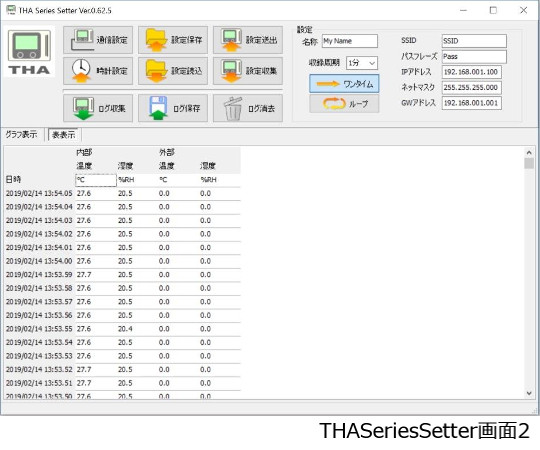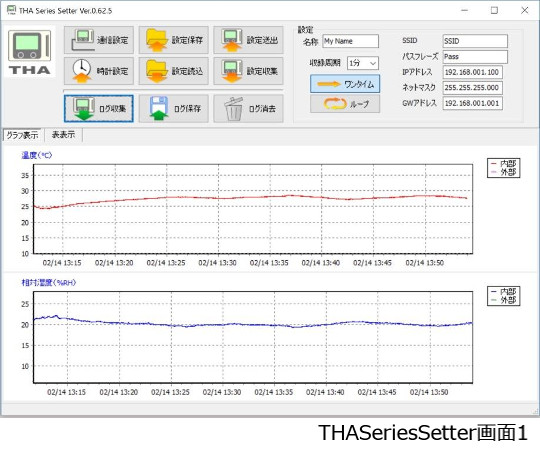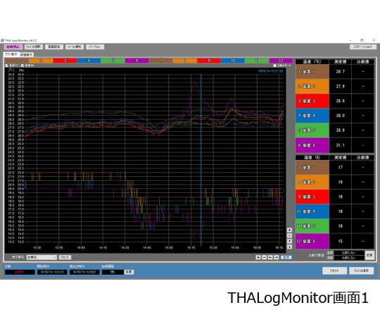 ●コンパクトなボディながら大きなデジタル表示。本体奥行により据置型に便利です。●広域な湿度域(10~90%RH)の相対湿度を±3%RH(Typ)で測定します。●電池残量の目安がひと目で確認できます。●メモリ残量の目安がひと目で確認できます。●モニター表示は最大30秒更新。5パターンの表示モードから選択が可能。●本体設定用アプリケーション(THA Series Setter)を使って、USB端子より記録したログの取り出しが可能で、この端子は給電ポートとしても使用できます。●別売センサーを用いて離れた場所も計測可能で、本体側との2CH計測が可能になります。●PCモニタリング用アプリケーション(THA Log Monitor)を使用することにより、USB経由でリアルタイムのグラフ/リスト表示が可能になります。(モニタリング時の記録間隔は5秒~)(最大6温湿度の計測が可能。内部外部使用時最大3台/内部のみ最大6台)●使用温湿度範囲:温度/0~60℃、湿度/90%RH以下(結露しないこと)●測定温湿度範囲:温度/-10~70℃、湿度/0~90%RH●表示分解能:温度/0.1℃、湿度/1%RH●参考表示精度:●▼温度/±0.3℃(Typ)、±0.5℃(Max)(0~60℃)●▼湿度/±3%RH(Typ)、±5%RH(Max)(25℃・10~90%RH)●▼※本機の校正点は50%RH@25℃時(温度±0.5℃/湿度±5%)1点となります。●サンプリングインターバル:1秒/5秒/10秒/30秒/1分/5分/10分/30分/60分●測定記録点数:最大約8,000点(1サンプリング周期で1点)●センサー:●▼感温部/バンドギャップ式半導体センサー●▼感湿部/静電容量式薄膜湿度センサー●サイズ:本体/110×32×77mm、表示部/52×40mm●電源:単3形アルカリ電池4本(テスト用付属)●接続端子:外部センサー用モジュラージャック、USB(Mini-B)●重量:約250g(電池4本含む)●材質:ABS●アプリケーションソフト:●▼本体設定用/THA Series Setter●▼PCモニタリング用/THA Log Monitor●▼共にWindows(R)7/8/8.1/10/11(32/64bit)にて動作。●●本体設定用アプリケーション(THA Series Setter 2.0.1)のダウンロードはこちらから●PCモニタリング用アプリケーション(THA Log Monitor v2.01)のダウンロードはこちらから●※機体ファームNo,v1.00にはご使用頂けません。