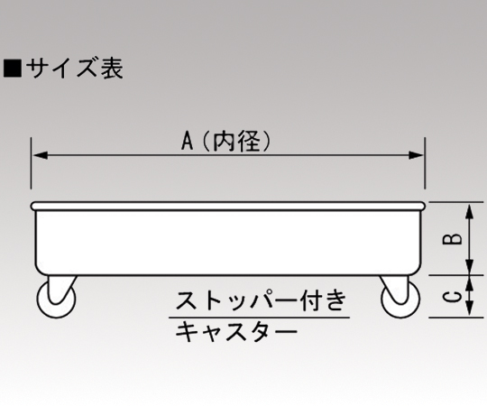 ●容器との脱着が容易なはめ込み式です。●絞り加工で軽量な皿タイプです。●材質(台車本体):ステンレス(SUS304)●キャスター:SSクロムメッキ・ゴム車・自在キャスター4個(内2個ストッパー付き)●耐荷重:112kg●適合タンク径(φmm):330●サイズ(A×B×C)(mm):335×40.0×65●重量(kg):1.4●型番:KM-33