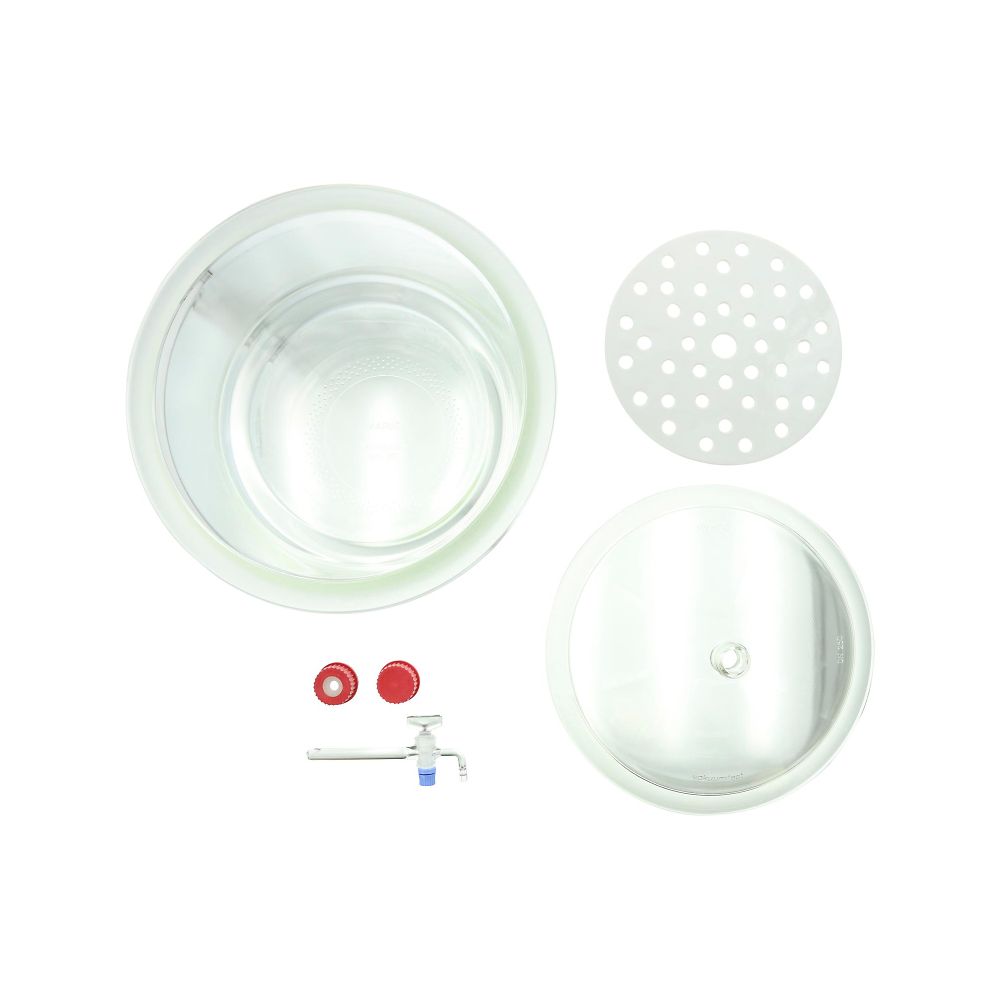●蓋と本体とも減圧に耐えるよう肉厚にできています。●磁性の中板が付属しています。●中板の下、本体底部に乾燥剤を入れて使用します。●減圧ポンプに接続し、減圧状態で乾燥、保存することができます。●デシケーターの中板は磁製を使用しています。●材質:本体・コック/硼珪酸ガラス(DURAN(R))、接続パッキン/シリコンゴム●中板直径:φ240mm●全高:344mm(コック部・キャップ除く。)●中板の上高さ:120mm●重量:6.6kg●付属品:中板、活栓、プラスチックキャップ●吸引口径:φ8mm●キャップ:GL-32●コード番号:017430-250