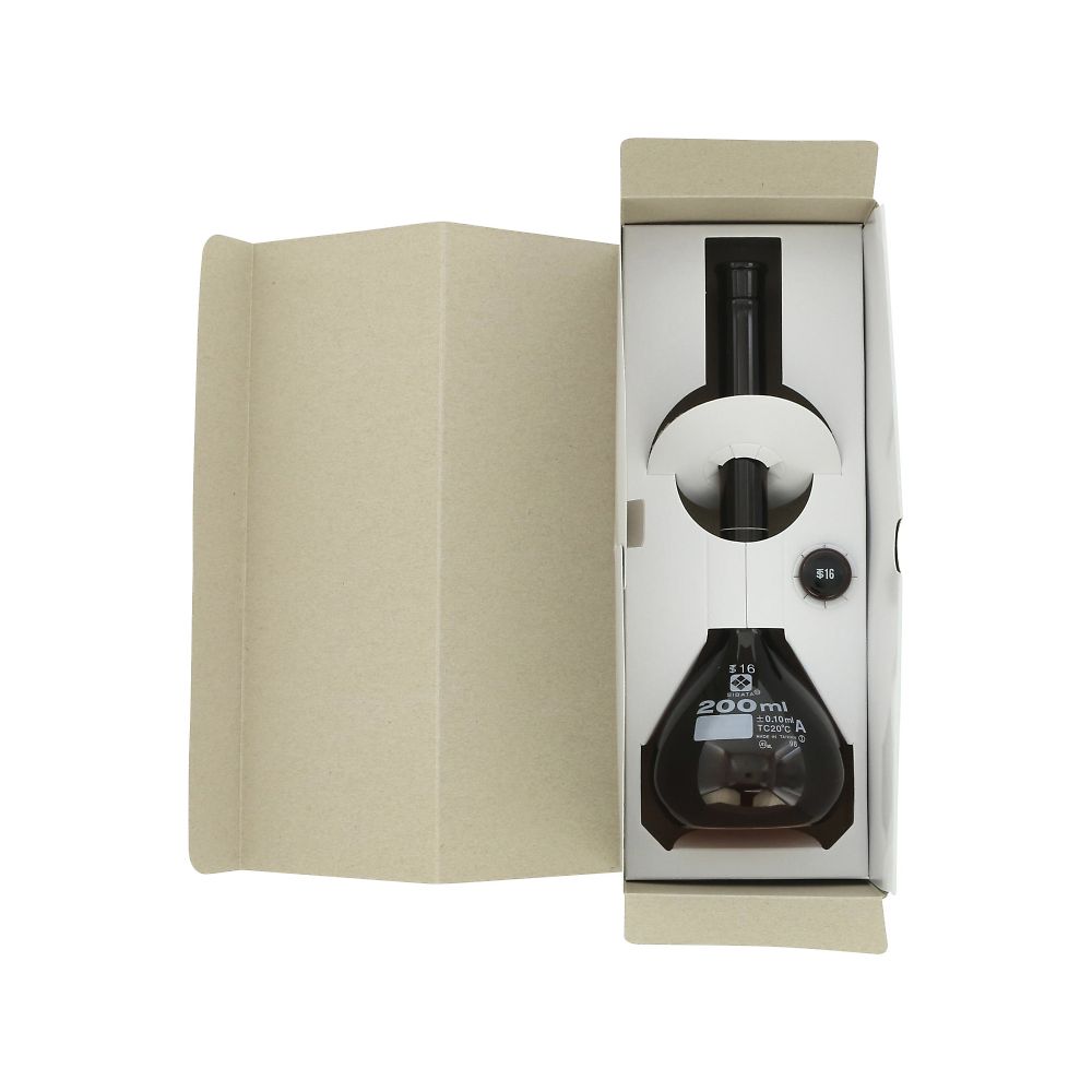 ●一定の体積を測るために用いられます。全量フラスコとも呼ばれます。●底の平らなフラスコに細長い首が伸びた形状で、首の部分に通常は1本の回線があります。●目盛のある首部分の径が細いため、同容量のメスシリンダーより目盛の精度が高いです。●一定の試薬濃度を正確に調整する時に使用されます。●目盛は受入体積(入っている体積)を表し、受用(入用)を意味するTCが表示しています。(TC:To Contain の略)目盛は20℃の水を測定したときの体積を表します。●JIS規格(R3505)クラスAの「体積の許容誤差」より高精度です。●遮光を目的として外側に茶染めを施しております。●材質:硼珪酸ガラス-2●TSガラス平栓付●全高:220mm●容量:200mL●色:茶●体積許容誤差:±0.10mL●栓(TS):16●外径:φ75mm●※JIS R3505(1994年)クラスAの「体積許容誤差」より高精度で製作しています。●●★※安全対策として、飛散防止を目的としたガラスコーティング対応が可能です。詳しくは下記までお問い合わせください。●●★アズワン株式会社▼サービスプロモーショングループ●★E-mail:tokuchu@so.as-1.co.jp●コード番号:020070-200