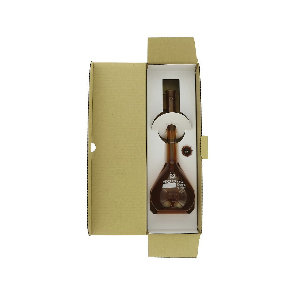●一定の体積を測るために用いられます。全量フラスコとも呼ばれます。●底の平らなフラスコに細長い首が伸びた形状で、首の部分に通常は1本の回線があります。●目盛のある首部分の径が細いため、同容量のメスシリンダーより目盛の精度が高いです。●一定の試薬濃度を正確に調整する時に使用されます。●目盛は受入体積(入っている体積)を表し、受用(入用)を意味するTCが表示しています。(TC:To Contain の略)目盛は20℃の水を測定したときの体積を表します。●JIS規格(R3505)クラスAの「体積の許容誤差」より高精度です。●遮光を目的として外側に茶染めを施しております。●材質:硼珪酸ガラス-1●TSガラス平栓付●全高:280mm●容量:500mL●色:茶●体積許容誤差:±0.15mL●栓(TS):19●外径:φ100mm●※JIS R3505(1994年)クラスAの「体積許容誤差」より高精度で製作しています。●●★※安全対策として、飛散防止を目的としたガラスコーティング対応が可能です。詳しくは下記までお問い合わせください。●●★アズワン株式会社▼サービスプロモーショングループ●★E-mail:tokuchu@so.as-1.co.jp●コード番号:020070-500