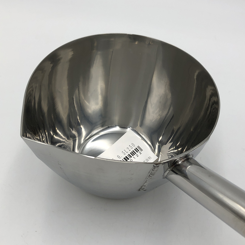 ●容量(L):0.5●径×深さ×柄長さ(mm):φ120×70×250●肉厚(mm):1●材質:ステンレス(SUS304)●※柄の長さ変更やフック取付など特注製作が可能です。お問い合わせください。