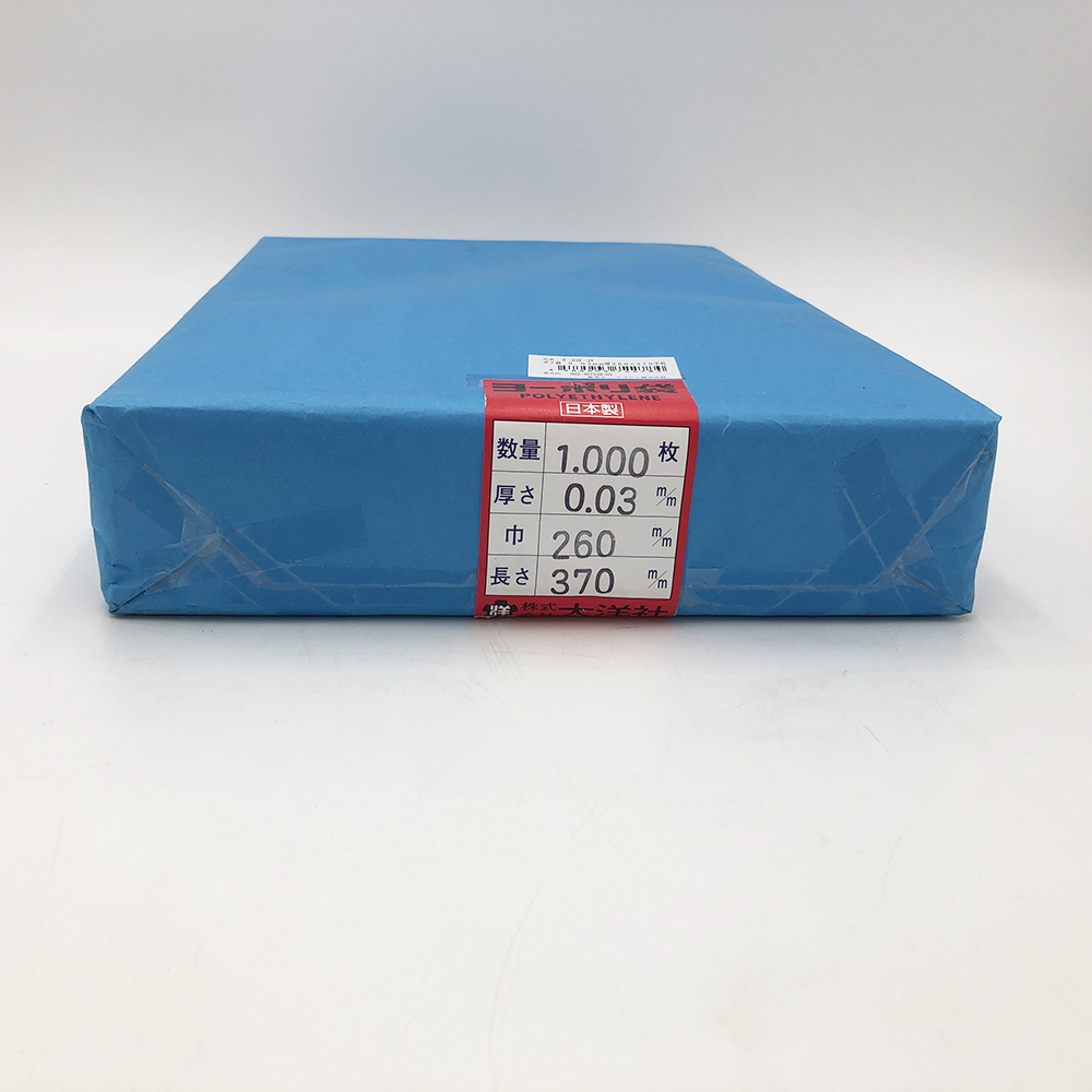 ●材質:PE(ポリエチレン)●サイズ(mm):260×370●厚み(mm):0.03●重量(1枚当たり):5.31g●入数:1包(1000枚入)