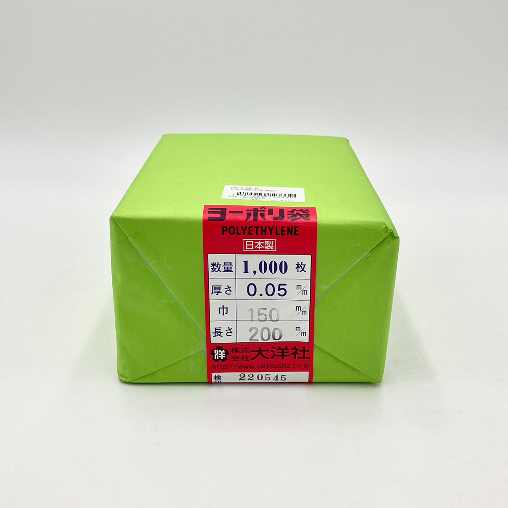 ●材質:PE(ポリエチレン)●サイズ(mm):150×200●厚み(mm):0.05●重量(1枚当たり):2.76g●入数:1包(1000枚入)