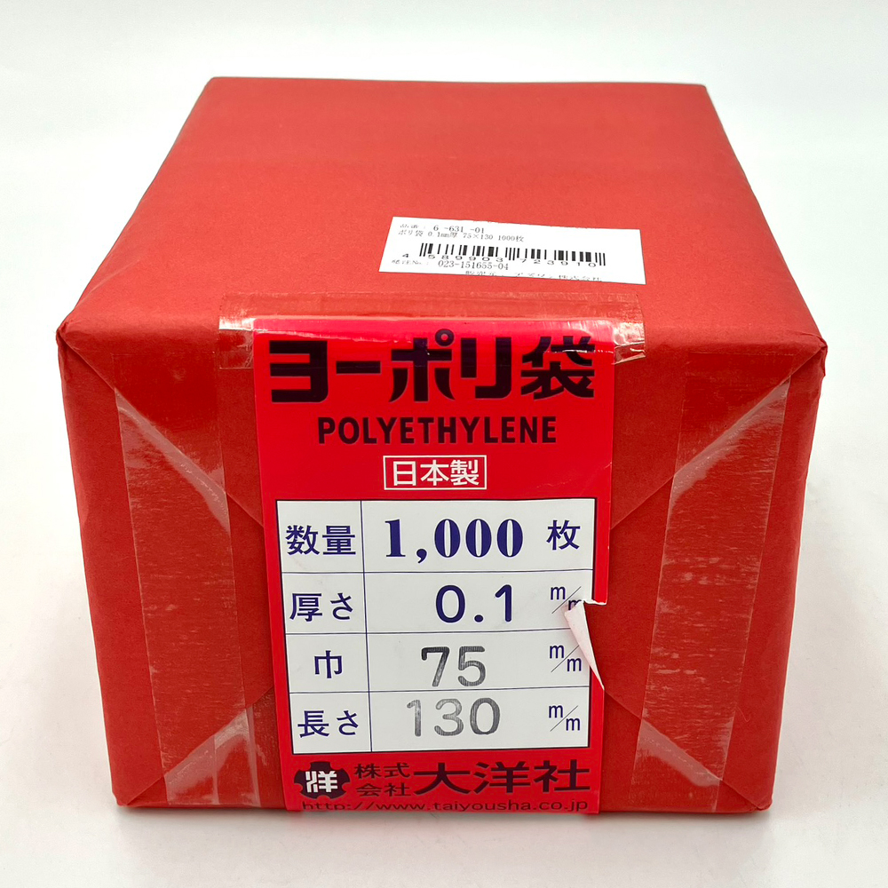 ●材質:PE(ポリエチレン)●サイズ(mm):75×130●厚み(mm):0.1●重量(1枚当たり):1.80g●入数:1包(1000枚入)