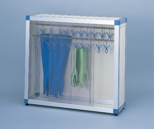 ●使用後のグローブ専用の収納キャビネットです。●手袋の整理・整頓に便利。●材質:本体/アルミ型材(アルマイト処理)・PVC(塩化ビニル樹脂)、吊棒/ステンレス(SUS304)●グローブハンガー:プラスチックグリップ(20個付き)●収納容量:(ロンググローブ)約15双、(ショートグローブ)約20双●重量:約16kg●外寸法(mm):900×250×820●有効内寸法(mm):886×228×786
