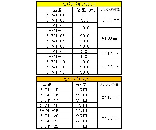 セパラブルフラスコ 筒型 1000mL 口内径φ120mm
