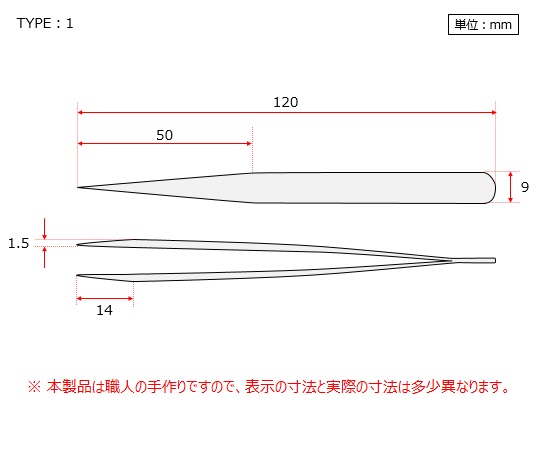 ●スイス製高級ピンセットを、超純水洗浄・クリーンパックしました。●熟練の職人の手によるスイス製精密作業用の高級ピンセットです。●18MΩの超純水でピンセット表面の油分や塵を除去します。●洗浄・乾燥後クラス100のクリーンルームで1つずつ包装しています。●厳しいクリーンルームの環境下でも安心してご使用できます。●耐酸性ステンレス鋼を使用しています。●非磁化ステンレスを使用しています。●フッ化水素、硝酸等の酸に耐性があります。●本体胴部がやや細身に仕上げてあり持ちやすく、一般的な軽作業に適しています。●型番:1-SA●全長(mm):120●先端フラットスリムタイプ