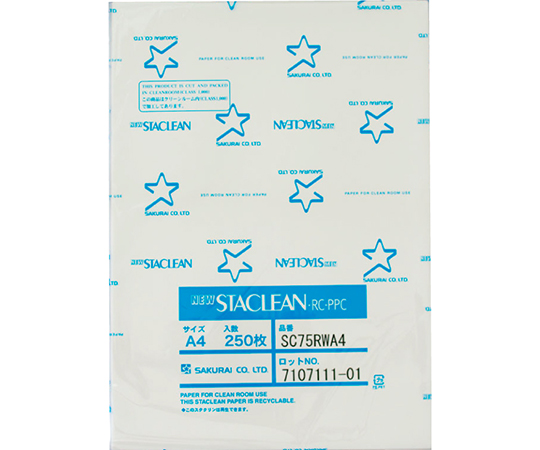 ●0.1μm以上の紙粉がほとんど発生しないことが確認されています。●水性・油性ペンで書き込みが可能です。●リサイクル可能な無塵紙です。●色:ホワイト●入数:1ケース(250枚×10束入)●スタクリン●坪量:72g/m2