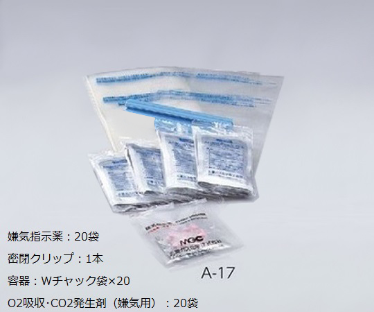 ●水・触媒不要の手軽な嫌気培養。●アルミ袋を破って中の小袋を容器に入れるだけで、容器内を嫌気性菌が生育しやすい環境にすることができます。●容器内の圧力が変わりませんので、ガスバリア性のある密閉容器やパウチ袋でも使用できます。●剤使用量目安:420mLまで(1袋)●タイプ:システム(パウチ用)●嫌気培養●容器:Wチャック袋×20●O2吸収・CO2発生剤(嫌気用):20袋●嫌気指示薬:20袋●密閉クリップ:1本●※保存方法:O2吸収・CO2発生剤/室温、指示薬/冷蔵●※有効期限(化粧箱に指示):O2吸収・CO2発生剤/製造より20ヶ月、指示薬/製造より6ヶ月