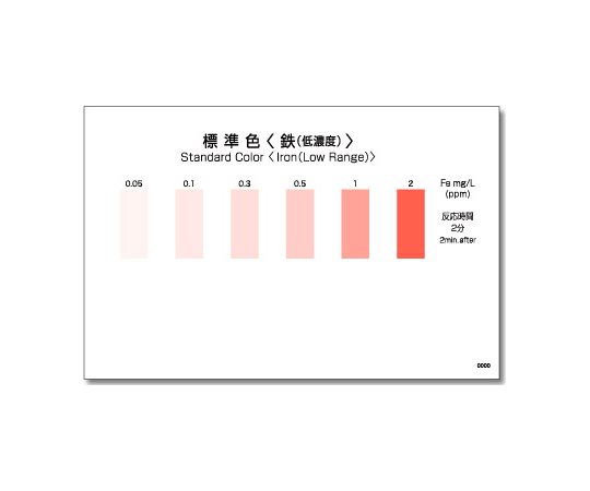 ●水道水等、検水中のイオン状態(Fe^2+・Fe^3+=溶存鉄)の鉄を容易に測定できます。●測定項目:鉄(低濃度)●測定回数:50●簡易水質検査器具●★測定原理:還元とバソフェナントロリン比色法●★測定目盛:0.05、0.1、0.3、0.5、1、2 mg/L●★測定時間:2 分●★内容:チューブ 50本(5本入りラミネート袋 10袋)、標準色 1枚、使用法 1部