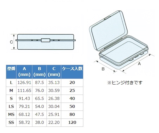 ●外寸法(mm):68.1×47.5×25.9●内寸法(mm):62.3×42.4×16.9●MAJYケース●材質:PP(ポリプロピレン)●入数:1ケース(80個入)●コード番号:0224-05●※外寸法の高さはフタを閉じた際の値です。内寸法の高さは受け部のみの値です。●オートクレーブ:不可