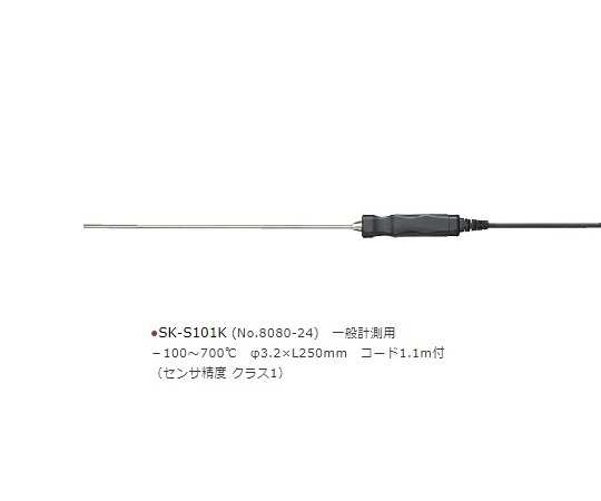 ●★品番2-1335-11 SK-1260用センサです。●コード番号:8080-24●一般計測用センサー(K熱電対)●★センサー精度 クラス1●測定範囲:-100~+700℃●シース部サイズ:φ3.2×250mm●★コード長:約1.1m●★材質:センサー/SUS316、取手/POM樹脂