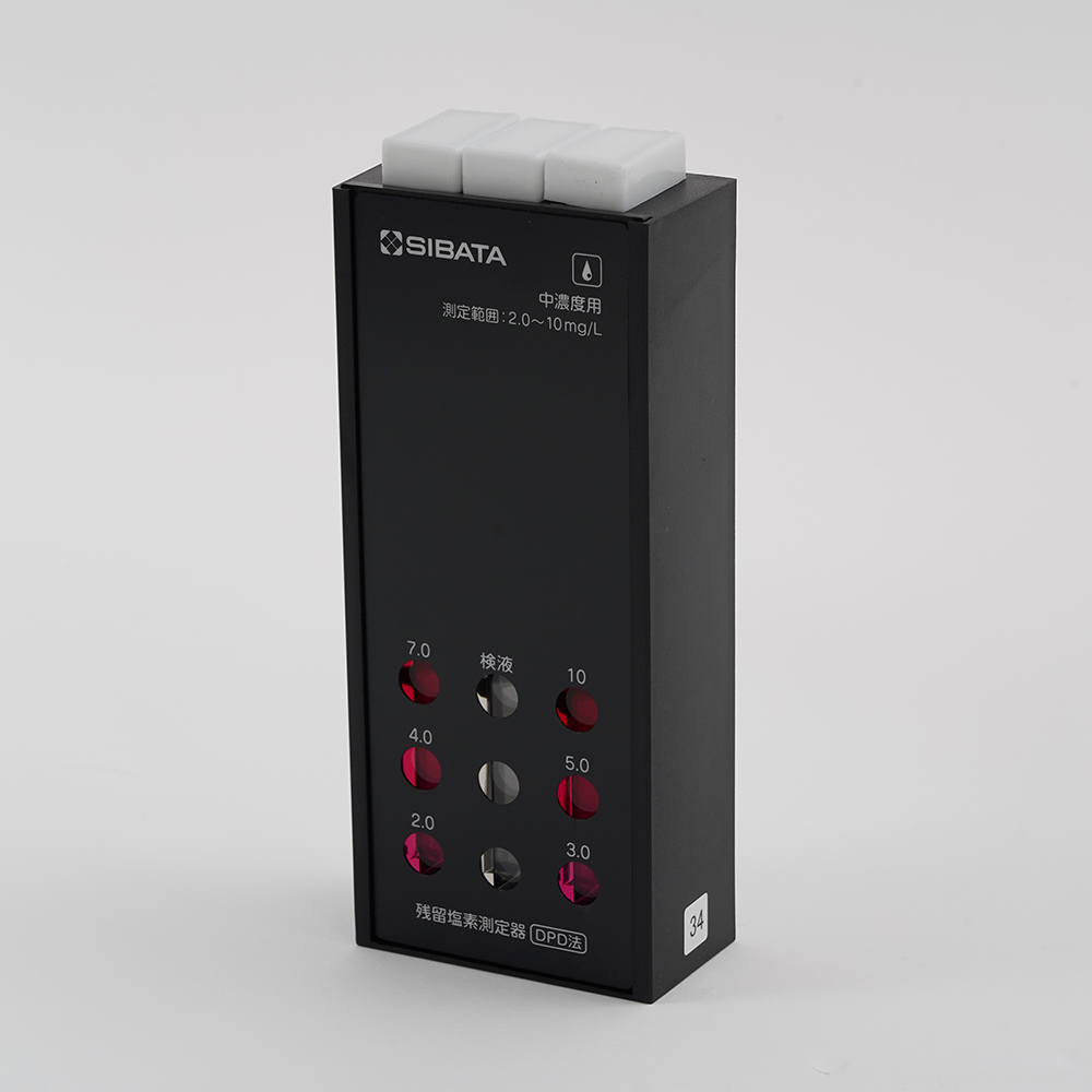 ●携帯に便利なビニールケース付です。●標準比色板による安定性のあるテストができます。●飲料水・プール用水の残留塩素を容易に測定でき、衛生管理に役立ちます。●比色板が取り外せますので、汚れや曇りなどを取り除くことができ、交換も可能です。●★残留塩素を含む水にDPD試薬を加えたとき特異的に反応し、残留塩素の量に応じて淡赤紫色を呈する反応に基づく簡易測定方法です。●★試薬添加操作は1回です(総残留塩素の測定の場合はオプションのヨウ化カリウムを併用して2回操作)。●★遊離残留塩素と総残留塩素の区別ができる測定器です。●★別売のヨウ化カリウム試薬を併用すると総残留塩素の測定ができ、総残留塩素濃度と遊離残留塩素との差から結合残留塩素濃度を求めることができます。●★用途:水道水、プール、公衆浴場、透析用水(総残留塩素)等の水質管理に。●★※温泉水や海水など、妨害物質が多く含まれる検水は測定できない場合があります。●測定範囲(mg/L):2.0~10●測定範囲:2.0・3.0・4.0・5.0・7.0・10mg/L●サイズ:ケース/97×50×170mm、本体/67×37×156mm●重量:0.3kg●セット内容:測定器(樹脂比色板付)、角型試験管×3本、ビニールケース●コード番号:080540-523