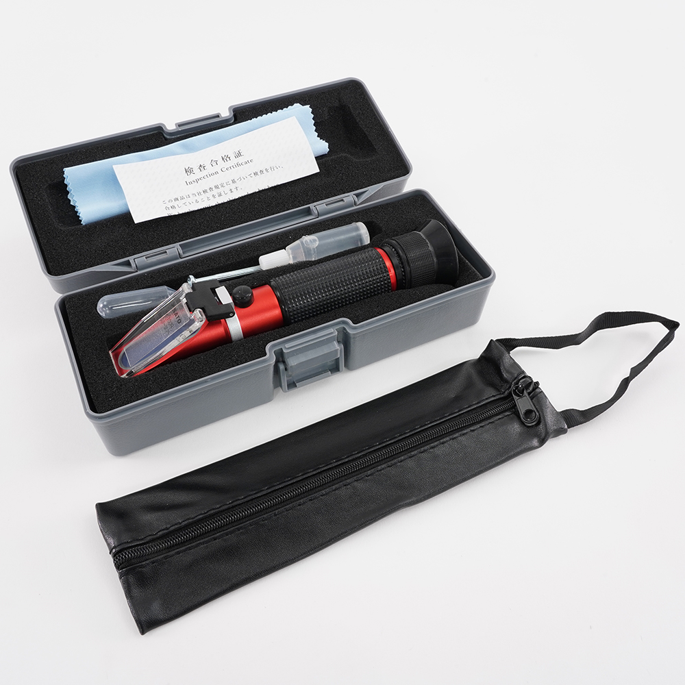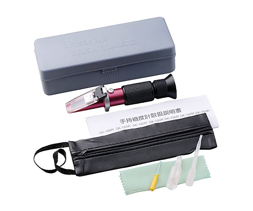 ●糖分、果汁、飲料、不凍液、ブレーキオイル、旋盤切削液、洗浄液などの濃度計測に最適●10~30℃間の自動温度補正機能付の為、温度を気にせず正しい測定ができます ●見やすい目盛りを採用●本体の軽量化をはかりつつ、環境に配慮した材質を使用しています(有害物質を使用していません)。●測定範囲:BRix0.0~32.0%(糖度・濃度)●測定精度(%)(at20℃):±0.2●最小目盛:BRix0.2%●自動温度補正付(温度範囲10~30℃)●外形寸法:約Φ29(グリップ)●★材質:本体:アルミニウム合金、プリズム:光学ガラス、採光板:ポリカーボネート、グリップ、接眼鏡帯:合成ゴム●全長:約170mm●質量:約105g●付属品:スポイト、ドライバー、布、蒸留水、本体収納ケース●コード番号:0180-00●※ご注意:●▼※本製品は全反射の原理にもとづいた屈折率を利用し、液体濃度を測定する機器です。そのため、光を通さない液体(牛乳や白濁した切削油など)にはご使用できません。●▼※Brix(%)目盛は、ショ糖溶液100gの中に含まれるショ糖(g)をパーセントで表したもので、ショ糖濃度を意味します。他の物質を主体とした溶液で、特に定量的に濃度を知りたいときは換算表が必要です。