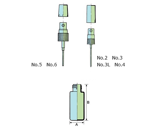 ●容量:5ml●本体(PP製)+スプレー白(オーバーキャップ・トップキャップ付)●サイズ(A×B):15.5×44mm●入数:50本●コード番号:0816-11