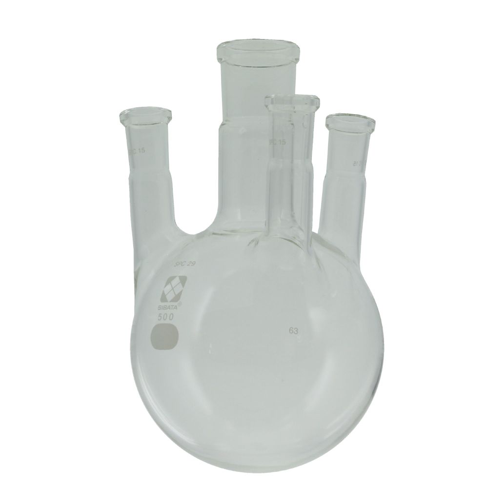 ●4ヶ所に接続口がある球状をしたガラス製のフラスコです。●接続口に、同じSPCガラス接手管規格のT形、C形との接続が可能です。●入数:1個●容量:500mL●主管:SPC-29●側管:SPC-15●高さ(mm):180●外径φ(mm):108●角度:5°●材質:ほうけい酸ガラス●ガラス種類:H●コード番号:030180-15500