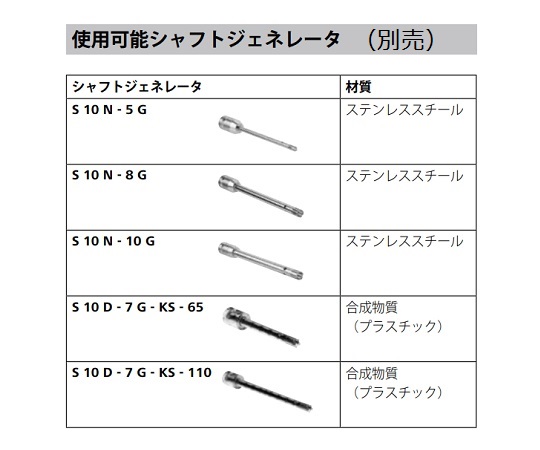 ●エコノミータイプのホモジナイザー、0.5~100mL用。●幅広い回転数は小型シャフトジェネレーターでも十分な周速が得られるように設計されています。●125Wモーターは回転数の安定をもたらし、多種多様なアプリケーションに対応。●AC電源(コンセント)から直接接続(DCへの変換装置不用)。●ステンレス製シャフトジェネレーター(直径5mm、8mm、10mmの3種)は洗浄しやすく、また特別な工具無しで本体に取り付け可能。●プラスチック製シャフトジェネレーターは2種、ポリメラーゼ連鎖反応法(PCR)遺伝子分析に最適。●R200クランプ付属。●モーター出力:125W●モーター入力:75W●最小処理量(対H2O):0.5mL●最大処理量(対H2O):100mL●最大粘度:5000mPas●回転数:6500~22000rpm ±12%(100V/60Hz)●回転数コントロール:無段階●回転数表示:目盛り●騒音値(without element):65dB(A)●支持アームの直径:8mm●支持アームの長さ:100mm●プロセスタイプ:バッチ●電源-ON:10min●電源-OFF:5min●本体寸法(W×H×D) :56×178×66mm●重量:0.61kg●許容周囲温度:5-40℃●許容周囲湿度:80%●DIN EN60529基準保護クラス:IP30●電圧:100V●周波数:50/60Hz●出力:125W●付属品:R200 クランプ×1台、取扱説明書×1部●スタンド対応機種:R 104(対応ボスヘッドクランプ:H 44、R 200(本体付属))