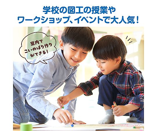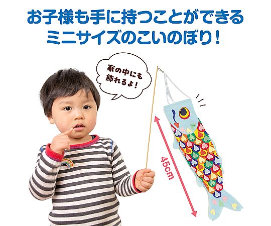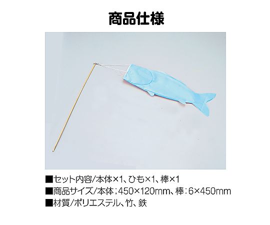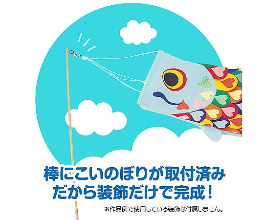 ●組立済なので、短時間で製作できます。●カラフルなこいのぼり!●※色がみは別売です。●色:ブルー●サイズ:450×120mm●その他サイズ:棒/φ6×450mm●材質:ポリエステル●包装形態:PP袋入●推奨使用画材:絵の具・水性マーカー・油性マーカー・クレヨン・色鉛筆●重量:24g●セット内容:こいのぼり×1、ひも、金具、棒