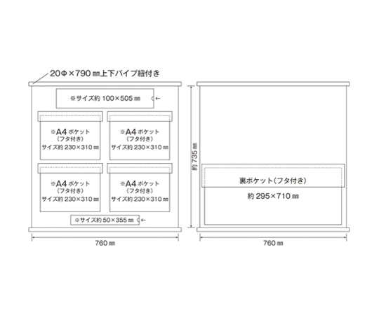 ●オリジナル書式をポケットに差し込むだけで簡単に掲示板が完成します。●丸めて持ち運びできるコンパクトタイプなので保管にも便利です。●書類のストックなどに便利な裏面ポケット付です。●材質:本体/ターポリン、ポケット/PVC●サイズ:約810×760mm●本体色:若草●ポケット数:表面/A4横サイズポケット×4、裏面/ポケット×1●セット内容:タイトル表示板(表示内容:安全掲示板)×1、社名用厚紙×1、上下パイプ(ヒモ付)●※ポケット内の掲示物、ペンは付属しません。●※加工上多少の違寸が生じる場合がございます。