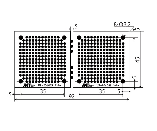 ●材質:両面ガラスコンポジット 1.6t●仕上処理:スルーホールハンダ●パターン:ドット(2.54mmピッチ)穴径φ1.0mm●入数:10枚入り
