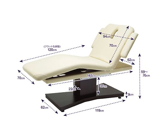 ●高さ調整とリクライニングが別々で操作可能な2モータータイプの電動ベッド●リクライニング上昇と同時に、ひざが曲がるよう設計されており、リラックスした状態を作り出せます。●天然木塗装仕上げのベース部分で今までにない新しいタイプの電動ベッドです。●アームレストとヘッドレストは状況に合わせて簡単に着脱可能です。●お手入れも簡単で柔らかくて滑らかな手触りのPUレザーを使用。●ベッドのコーナーに体が引っ掛かりにくいよう、四隅に丸みを持たせた安全設計。●当電動ベッドは、高級感のある空間を演出してくれるベッドとして人気があります。●サイズ:幅70cm、幅(アームレスト含む)/94cm、長さ/190cm、高さ/59~76cm●素材(レザー):ソフトPUレザー●重量:約80kg●色:アイボリー●※運搬費・搬入費・据付費・組立費等が別途必要です。お問い合わせください。