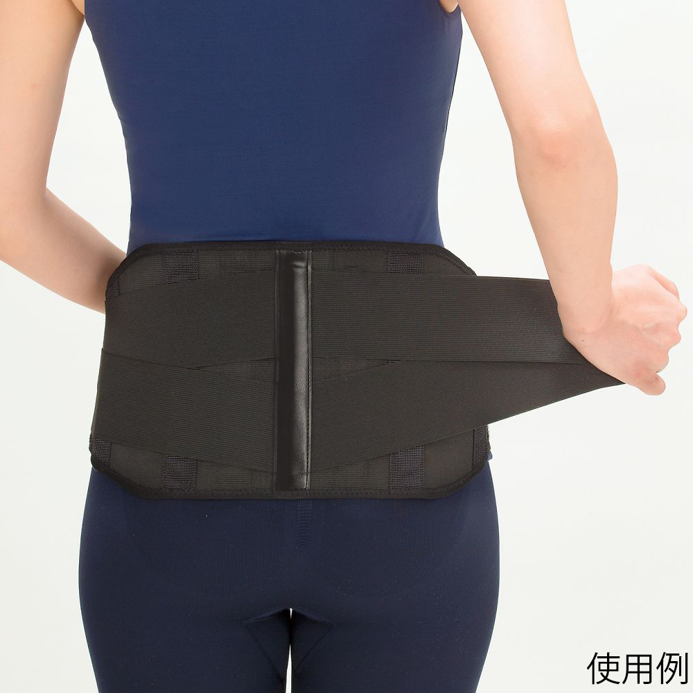 ●腰部固定帯。●医療現場で採用されている信頼の品質です。●洗濯可能。(手洗い。中性洗剤をご使用ください。)●上下対称構造のため、正面接着部分をご自身の使いやすい合わせ向き(右前or左前)で装着できます。●正面と補助ベルトの面ファスナー接着部分の端に、『take off zone』非接着部分があるため、着脱しやすくなっています。●伸縮部分・非伸縮部分ともに、通気性を重視したメッシュ素材採用してます。●4本のステーを体型に添うように腰部の中心にフィットさせることで効果的にサポートします。(※ステーは取外し出来ません)●弾力性のある特殊樹脂の為、追従性に優れています。体型ラインに密着させるため凸型断面になっています。●平ゴムタイプで伸縮性に優れています。腹斜筋に添った補助ベルトは腹圧を高め、下腹部を引き上げて腰部への負担を軽減します。●樹脂ステーの上から留めるため、よりフィット感が得られます。●動きやすさ・通気性・ホールド性の3つの機能をバランスよく実現した形状です。●腹部の幅を狭くしています。前屈制限が少なく、しかも胃に負担をかけません。●背部の幅が広くなっています。過伸展を防ぎ背筋を補助します。●色:ブラック●サイズ:M(適応腰まわり75cm~90cm)●材質:ナイロン・綿・ゴム・ポリエステル・ポリウレタン・樹脂ステー