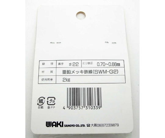 ●柔軟性があり、加工しやすい。●強度が強く極めてサビにくい。●独特の光沢が美しい。●細い線は工作やホビーの友に、結束細工にも適している。●使用荷重(kg):2●線径(mm):0.70~0.66●サイズ(番手×長さm):#22×10●材質:亜鉛メッキ鉄線(SWM-G2)
