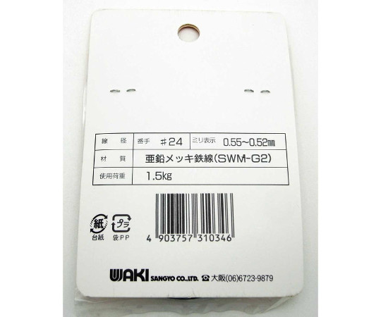 ●柔軟性があり、加工しやすい。●強度が強く極めてサビにくい。●独特の光沢が美しい。●細い線は工作やホビーの友に、結束細工にも適している。●使用荷重(kg):1.5●線径(mm):0.55~0.52●サイズ(番手×長さm):#24×12●材質:亜鉛メッキ鉄線(SWM-G2)