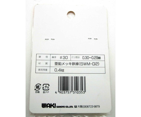 ●柔軟性があり、加工しやすい。●強度が強く極めてサビにくい。●独特の光沢が美しい。●細い線は工作やホビーの友に、結束細工にも適している。●使用荷重(kg):0.4●線径(mm):0.30~0.29●サイズ(番手×長さm):#30×20●材質:亜鉛メッキ鉄線(SWM-G2)