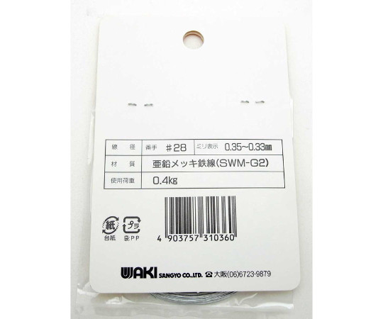 ●柔軟性があり、加工しやすい。●強度が強く極めてサビにくい。●独特の光沢が美しい。●細い線は工作やホビーの友に、結束細工にも適している。●使用荷重(kg):0.4●線径(mm):0.35~0.33●サイズ(番手×長さm):#28×17●材質:亜鉛メッキ鉄線(SWM-G2)
