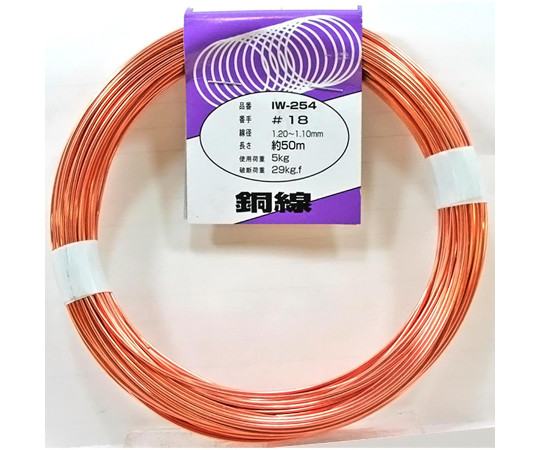 ●独特の光沢があり美しく耐食性にすぐれている。●柔らかく使いやすい工作やホビーに適している。●番手:#18●線径(mm):1.2~1.1●使用荷重(kg):5●破断荷重(kgf):29●長さ(m):約50●材質:電気用軟銅線