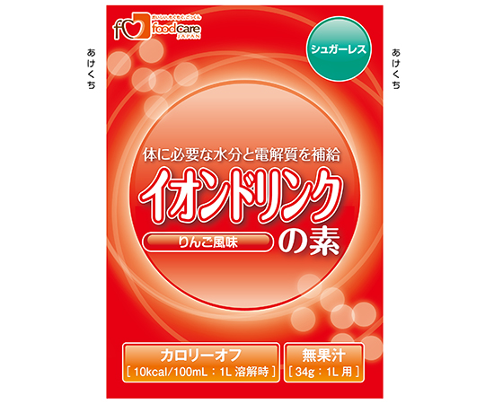 ●体に必要な水分と電解質を補給。●水分だけでなく失われたイオン(電解質)も効率よく補給できます。●体液に近い浸透圧です。(276mOsm/kg・H2O)●シュガーレスです。(糖類0g)●カロリーオフです。(10kcal/100mL:1L溶解時)●水1Lに1袋溶かすだけで簡単に作れます。●りんご風味●原材料名:マルチトール、食塩、コンブエキス、パラチノース、調味料(アミノ酸)、酸味料、塩化K、甘味料(アセスルファムK、スクラロース)、乳酸Ca、炭酸Mg、香料、着色料●アレルギー(特定原材料等27品目):該当なし●入数:34g×100袋/ケース●賞味期限:製造後1年●無果汁●※本製品は日本国内のみの販売とさせていただきます。