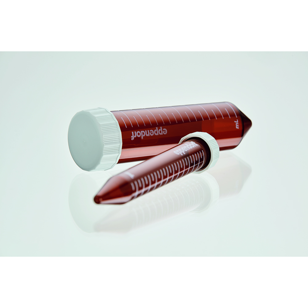 ●コニカルチューブ 15/50 mL 遮光タイプ●▼密閉性が高く、横向きでも液漏れしにくいデザイン●▼回しやすく、横置きにしても転がりにくい形状のキャップ●▼最大 19,500 x g の遠心耐性で、高速遠心も可能●▼可塑剤、スリップ剤、殺生物剤を使用せず、チューブからの溶出を最小限に抑制●●内部の液量を目視確認できる遮光性チューブ●▼光感受性のサンプルの保存に便利な遮光性チューブ。●▼エッペンドルフの茶色コニカルチューブは、約 550 nm 以下の波長の光をほぼ完全に遮る遮光性を保ちつつ、チューブ内部の液量を目視で確認できるようになっております。●▼チューブ内のピペットチップの先端の位置が容易に分かるので、コンタミネーションのリスクを低減できます。また、高精度なピペッティングが可能になります。●サイズ:15mL●▼長さ:121mm●▼直径:17mm●材質:●▼チューブ:ポリプロピレン(USP class 6 原料)●▼スクリューキャップ:高密度ポリエチレン(HDPE)●オートクレーブ耐性:無し●使用温度範囲:-86℃~100℃●耐遠心力:最大19,500xg●販売単位:200本(50本×4袋)●滅菌済(SAL 10-6)、pyrogen-, DNase-, RNase-, human and bacterial DNA-free●遮光性●▼ライトプロテクション●▼紫外線カット●▼550nm以下の波長の光を遮光