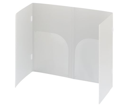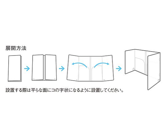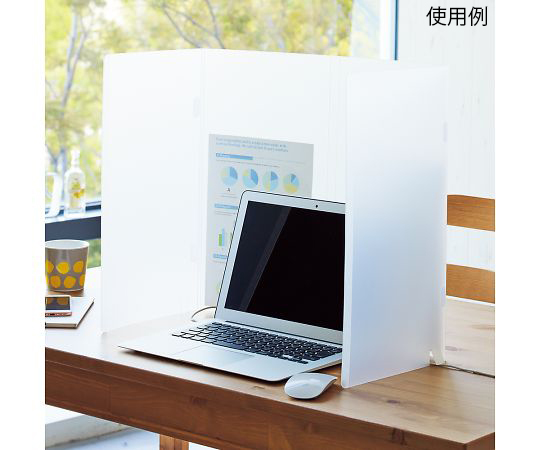 ●オフィスや自宅、学校や飲食店などでの飛沫感染予防に。●光を遮らない乳白色のブースで手元が明るく作業しやすい。●安心の高さで飛沫感染防止。●正面には書類が入るポケット付き。●消毒して衛生的に使える厚手のポリプロピレン製。●両サイドにはコード逃し穴付き。●簡単にパーソナルスペースを確保できます。●面ファスナー付き。●設置する際は平らな面にコの字状になるように設置してください。●厚手のポリプロピレン製の為、アルコールなどで拭き取りやすく衛生的にお使いいただけます。●材質:本体/ポリプロピレン(生地厚1.0mm)、ポケット/ポリプロピレン(生地厚0.2mm)、面ファスナー/ポリエステル●コの字展開サイズ:幅527×奥行き244×高さ450mm