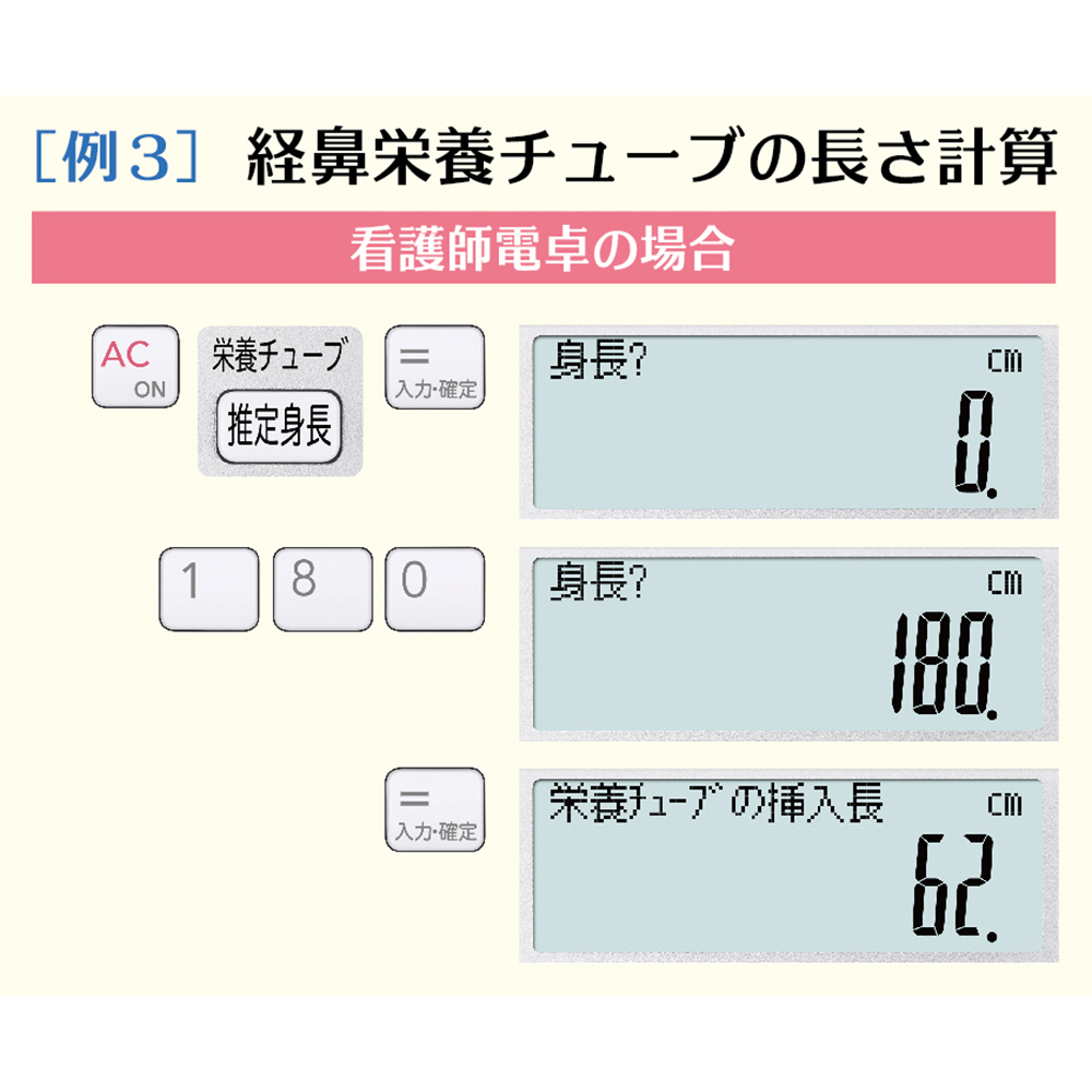●看護師業務に特化した計算機能を搭載●計算機能一覧:BMI計算、標準体重計算、目標体重計算、滴下数計算、膝下からの推定身長計算、経鼻栄養チューブの長さ計算、褥瘡計算、インスリン抵抗性指数計算●SIAA(抗菌加工マーク取得)