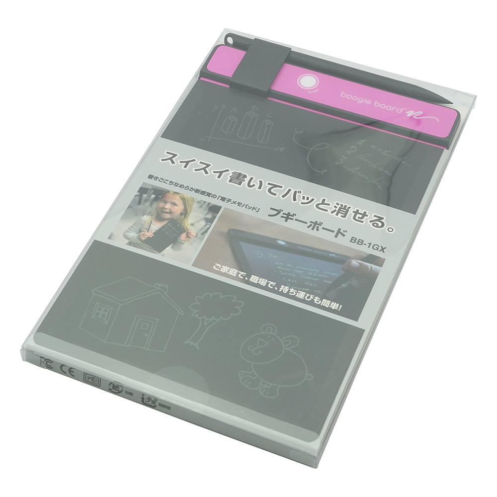 ●シンプルな操作で使いやすい新感覚の「電子メモパッド」です。●画面は感圧式なので筆圧で線の太さを変えられ、書きごこちもなめらかです。●ボタンを押すと、画面を消去できます。●コンパクトで軽量なので、手軽に持ち運びもできます。●本機は、電子機器の為、水などをかけたり、水中で使用すると故障します。●画面(LCDパネル)を拭く際は、柔らかい布をお使いください。●色:ピンク●縦×横×厚み(mm):141×222×3.2※●材質:ABS樹脂、PC(ポリカーボネート)●画面サイズ:182×125mm(8.5インチ)●付属品:専用スタイラス(ペン)、スタイラスホルダー●消去回数:約5万回●重量:110g●コイン型電池内蔵(電池交換不可)●※突起部除く最薄部